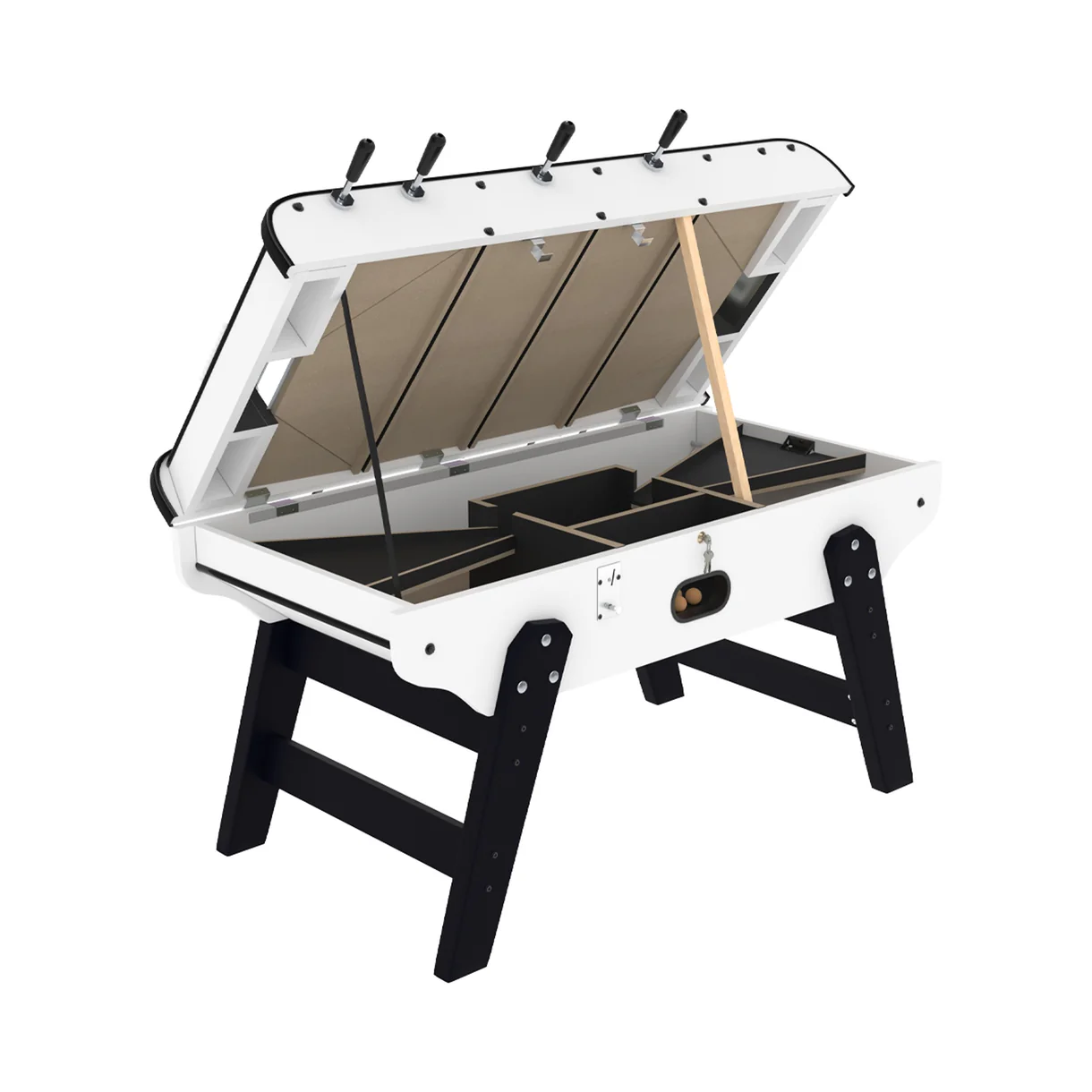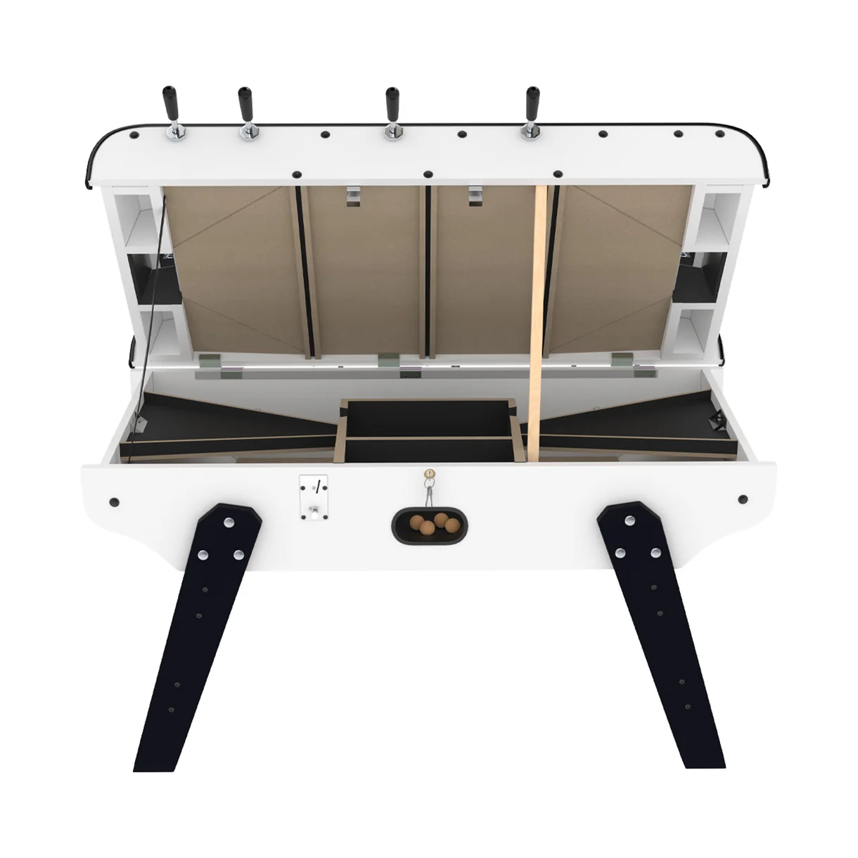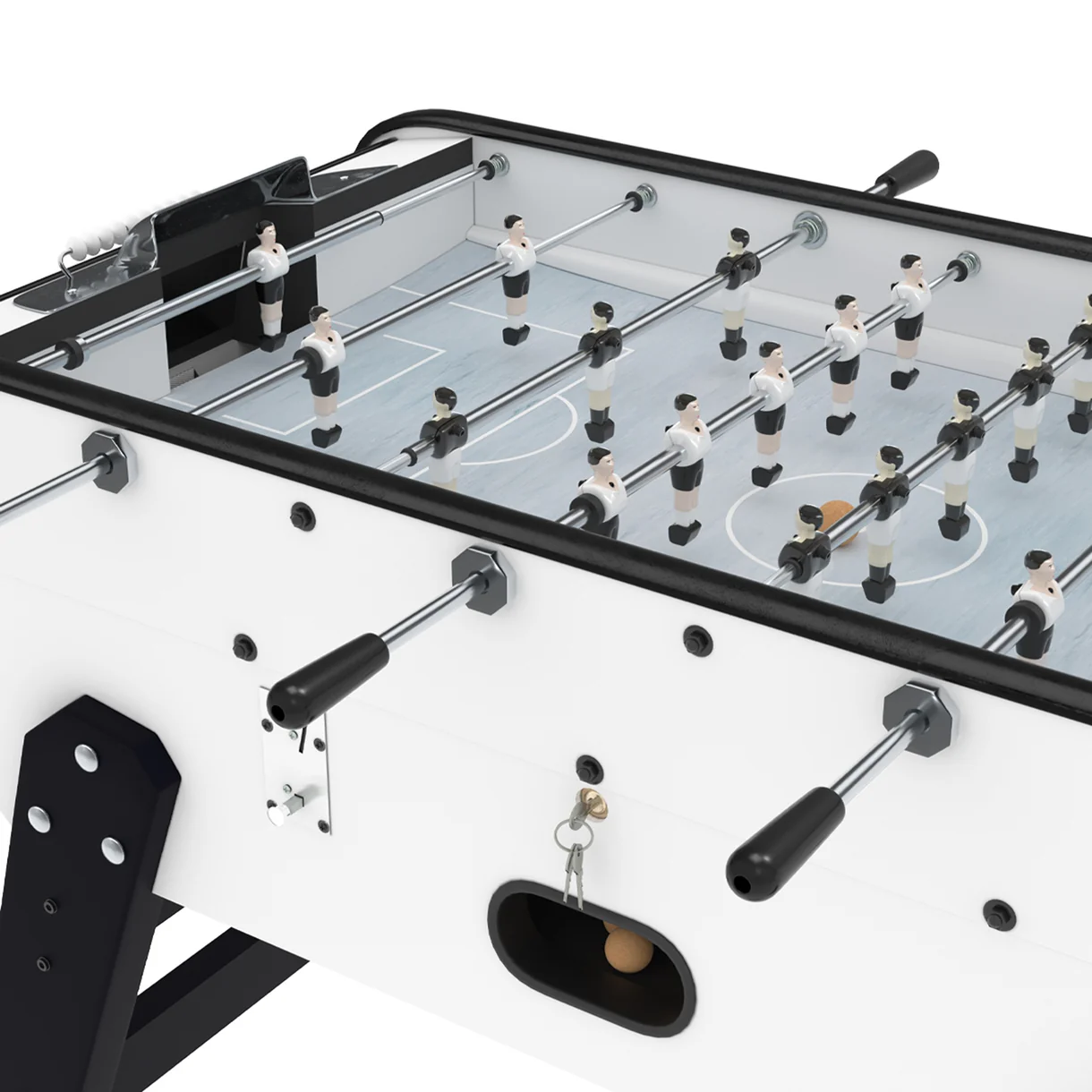 Sublimez votre intérieur avec le Baby-foot Bistrot Blanc. Un modèle rétro remis au goût du jour, alliant une esthétique minimaliste à la robustesse légendaire des tables de bar.