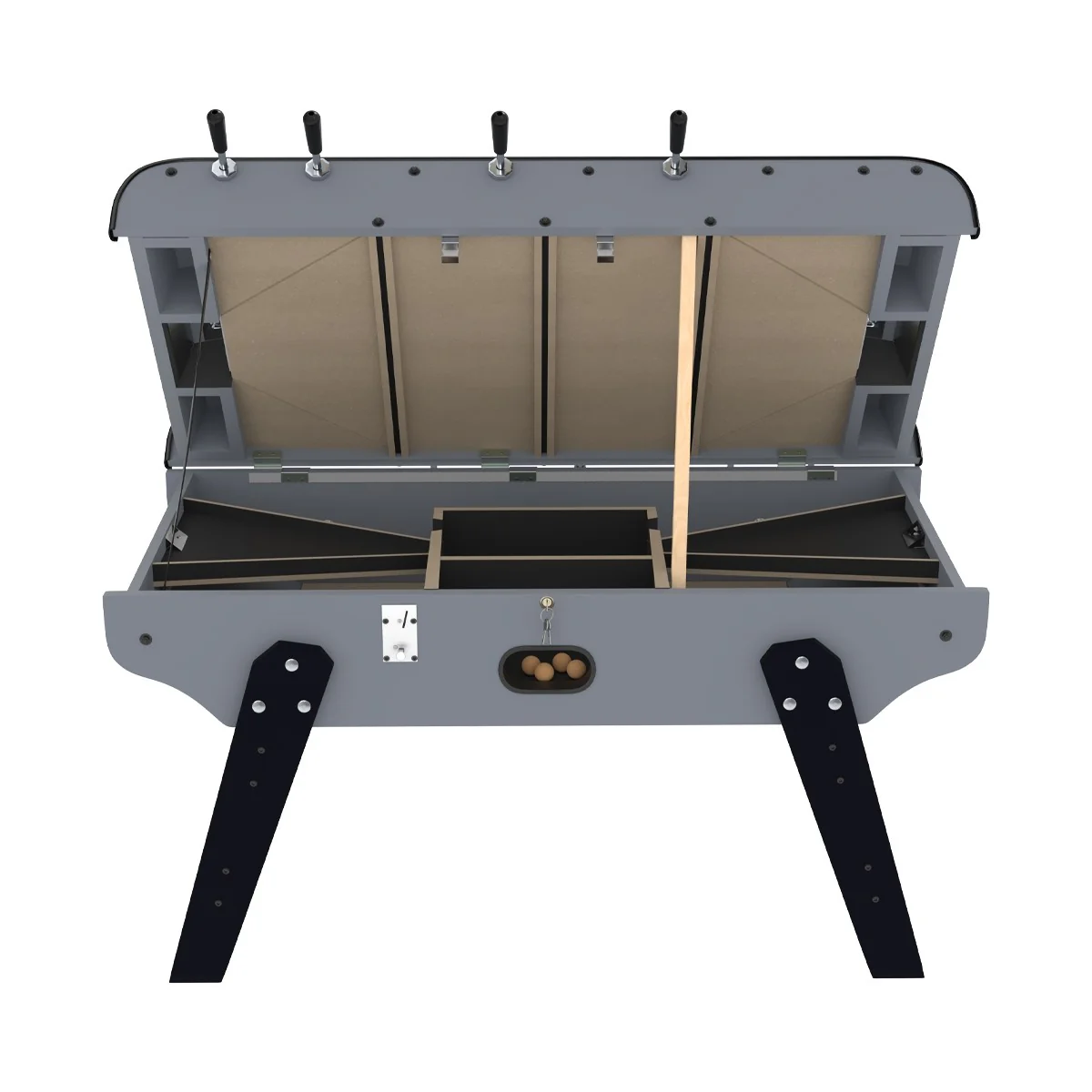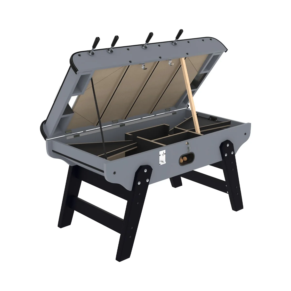 Sa caisse ouvrante permet un accès facile au mécanisme du monnayeur et facilite grandement le nettoyage de l’intérieur de la table.