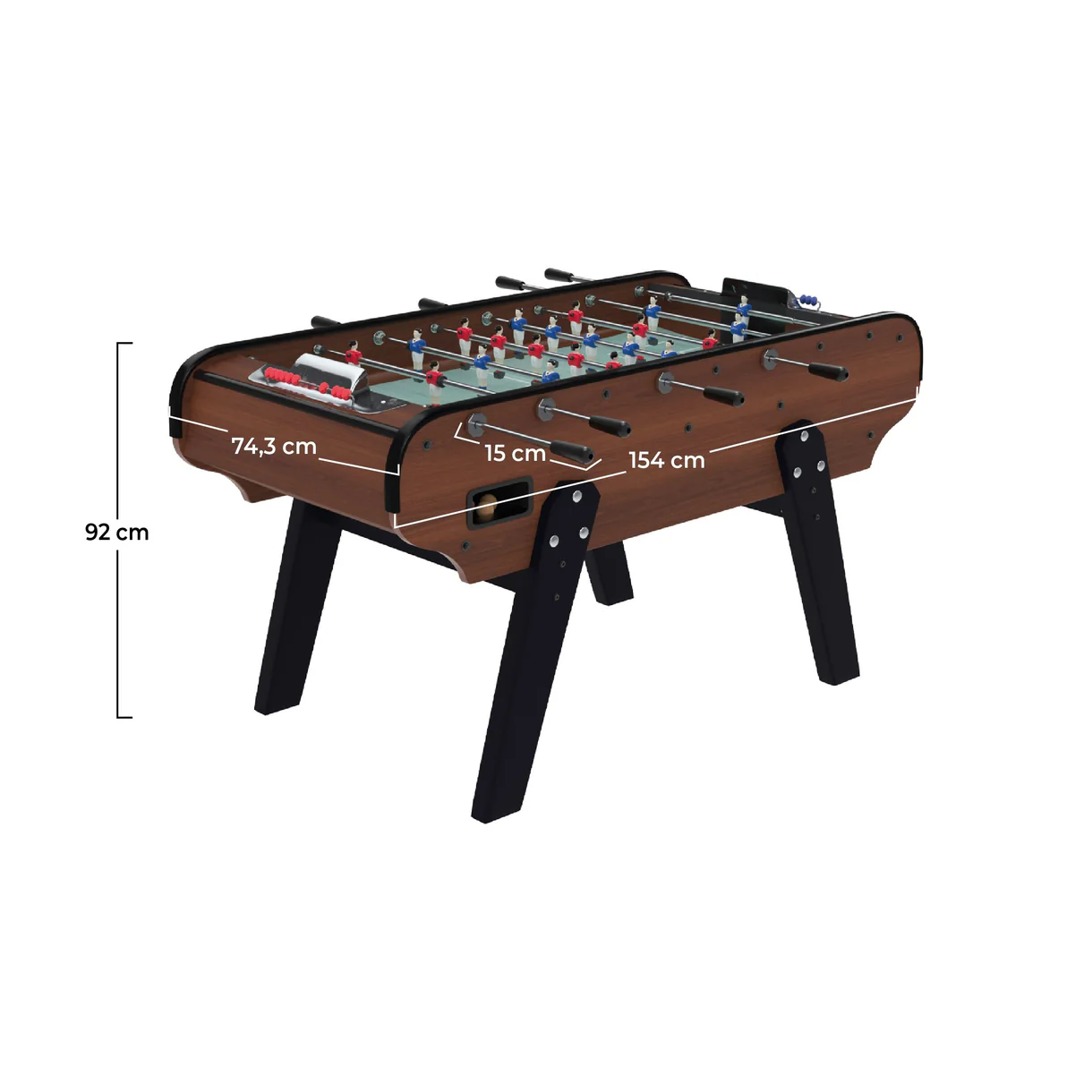 Le Baby-foot Scudetto Acajou est la solution idéale pour ceux qui recherchent une table de jeu familiale, authentique et performante sans compromis sur le budget. Son meuble en mélaminé bois foncé lui donne un cachet unique qui s’intègre parfaitement dans un salon ou une salle de jeux.