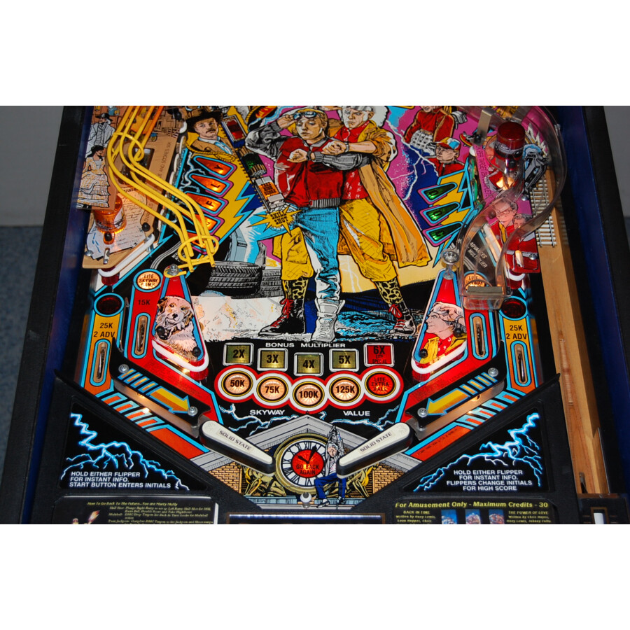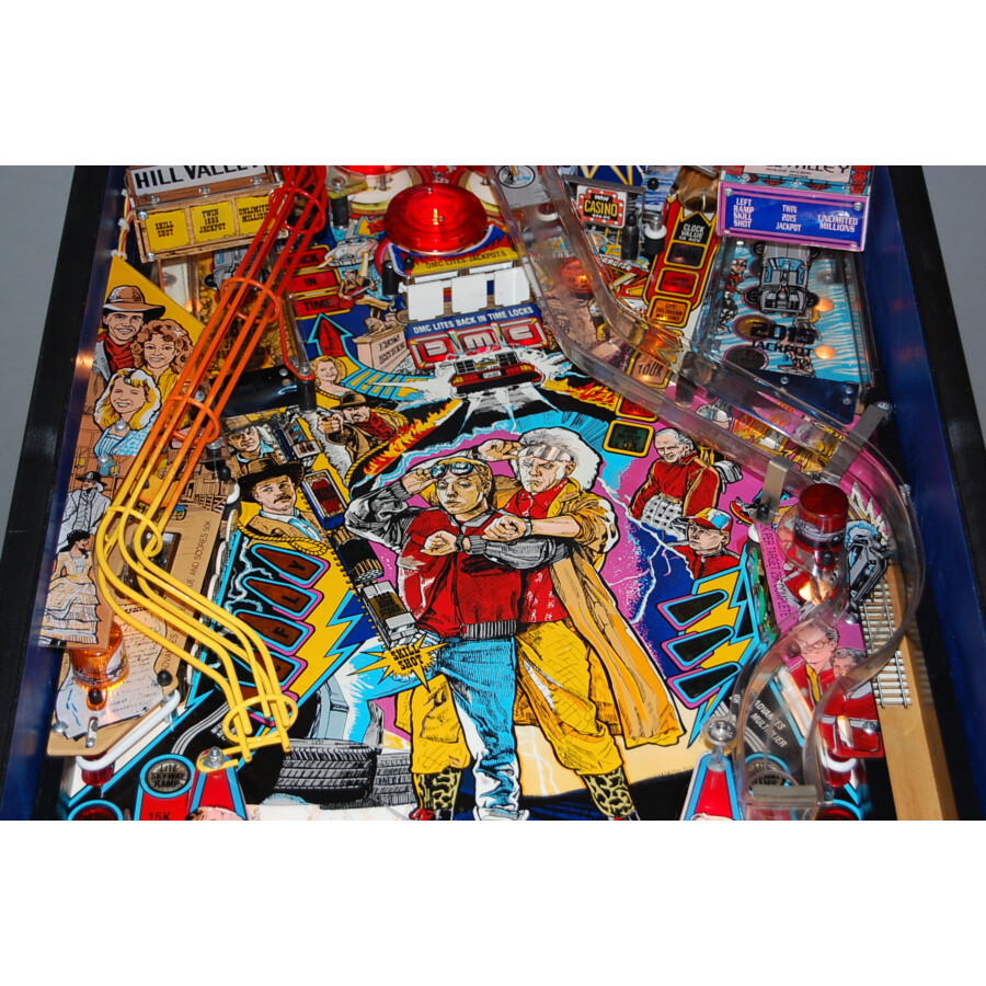 Montez à bord du DeLorean et remontez le temps directement dans votre salle de jeu ! Découvrez ce légendaire flipper Data East Back to the Future, proposé en occasion. Sorti en 1990, cette machine vous replonge dans l’aventure culte du film, avec ses sons mémorables et un plateau de jeu qui célèbre l’univers créé par Robert Zemeckis et Steven Spielberg. C’est un flipper très recherché par les fans de la trilogie et les collectionneurs.
