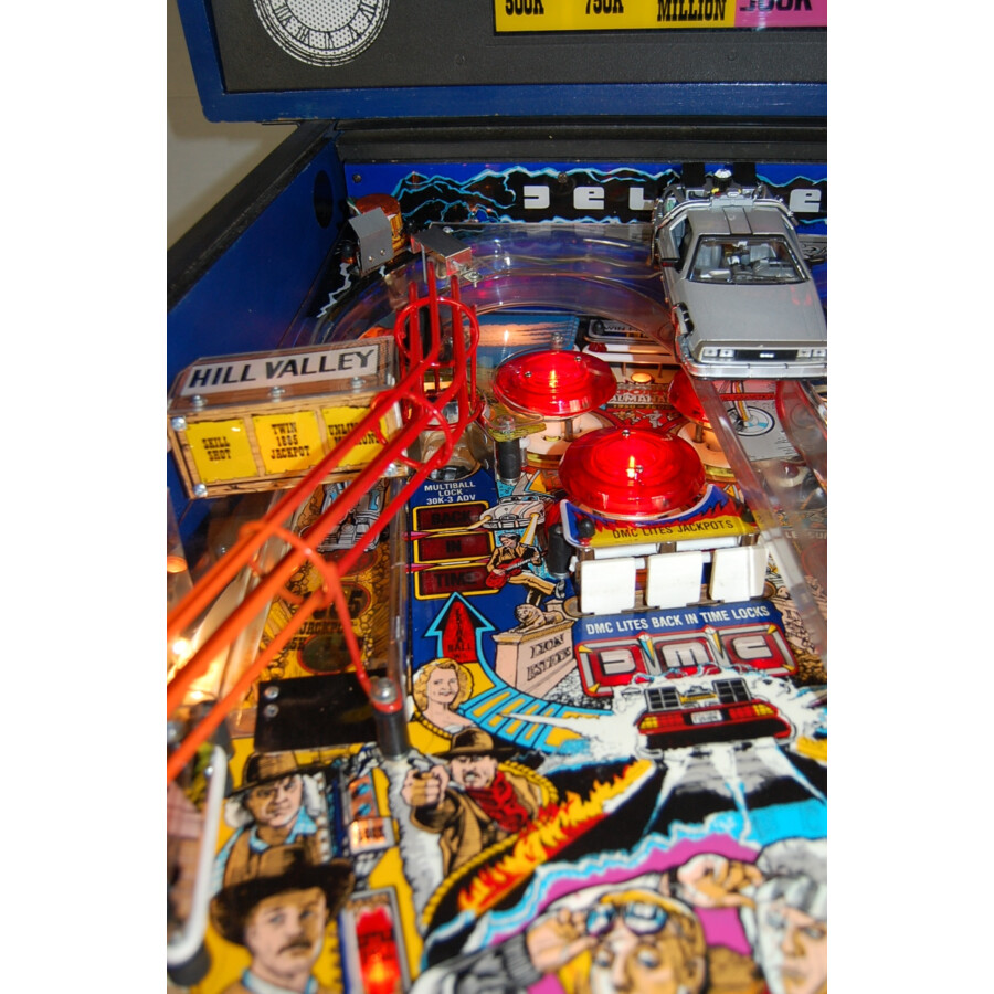 Flipper Occasion Back to the Future (1990) par Data East. Thème culte, icône des 90s. Disponible en état vérifié/jouable ou entièrement restauré (Editions Collector / Protected).