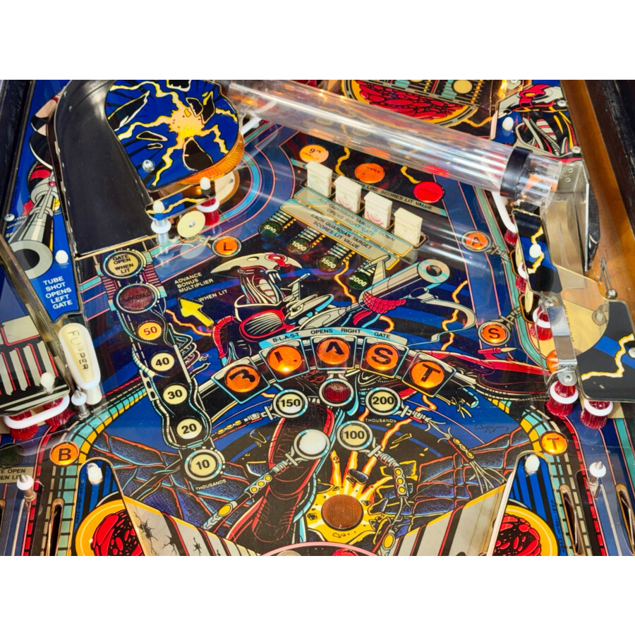 Embarquez pour une mission intergalactique avec ce magnifique flipper Bally Cybernaut, proposé en occasion ! Sorti en 1985, ce classique électronique de Bally vous propulse dans un univers de science-fiction avec son design futuriste et ses sons caractéristiques des années 80.
