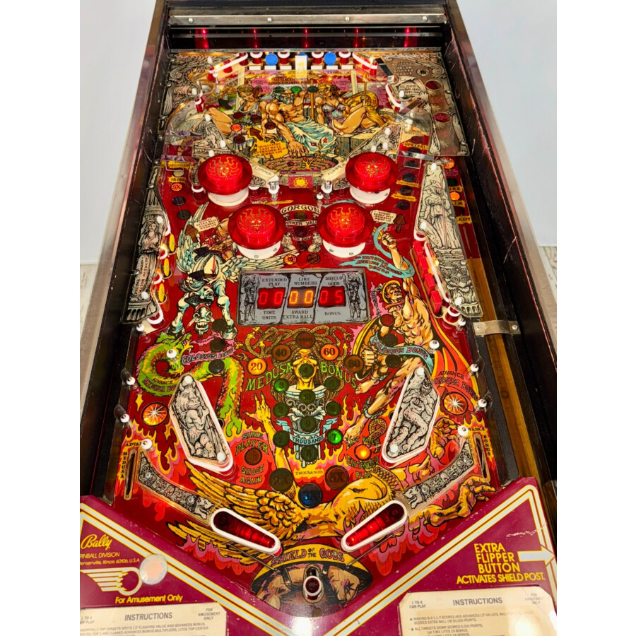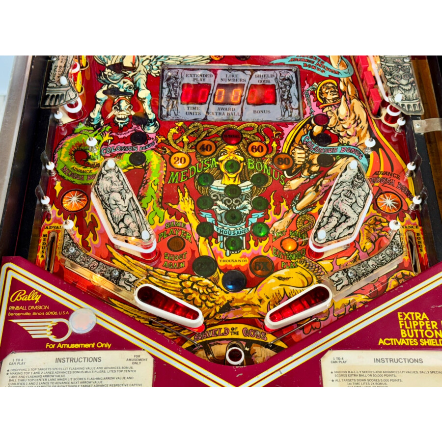 Flipper Bally Medusa (Occasion) de 1981. Un classique vintage au design mythique, en état jouable sous conditions. Idéal collectionneur ou projet restauration. Inclut protection de plateau.