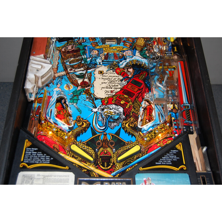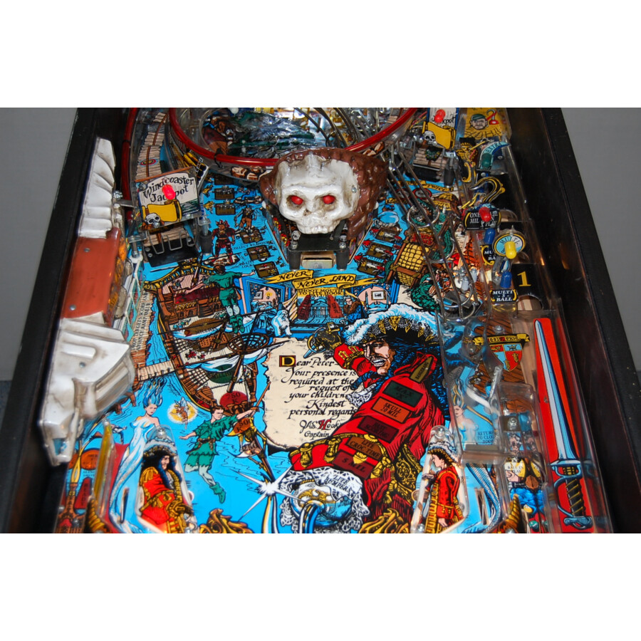 Préparez-vous à naviguer vers le Pays Imaginaire et à affronter le Capitaine Crochet avec ce magnifique flipper Data East Hook, proposé en occasion ! Sorti en 1992, cette machine spectaculaire est une adaptation fidèle et pleine de fantaisie du célèbre film « Hook », vous plongeant dans l’univers magique de Peter Pan, des Enfants Perdus et de la confrontation avec son ennemi juré.