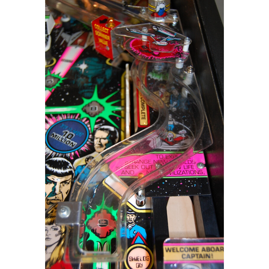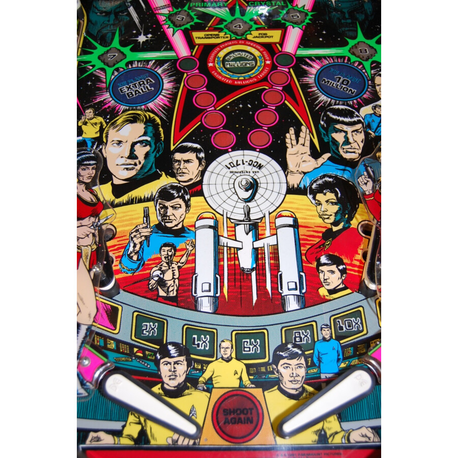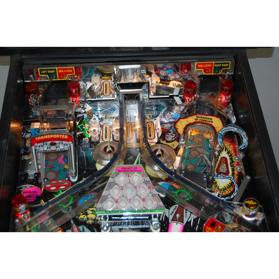 Ce flipper Star Trek est en bon état général pour son âge et jouable (selon les standards habituels pour ce type de machine d’occasion). Il capture l’esprit de la série avec son design, ses sons et ses objectifs de jeu. Collectionnez tous les cristaux pour activer un Multibille intense et réussissez des tirs spectaculaires pour vous téléporter (« Beam Up ») à travers le plateau ! Le son de haute qualité avec des éléments de la série Star Trek renforce l’immersion. C’est une machine idéale pour tout fan de la série, de science-fiction ou amateur de flippers vintage qui cherche une expérience de jeu classique et thématique.