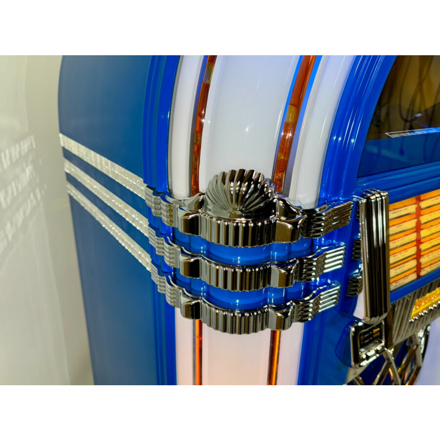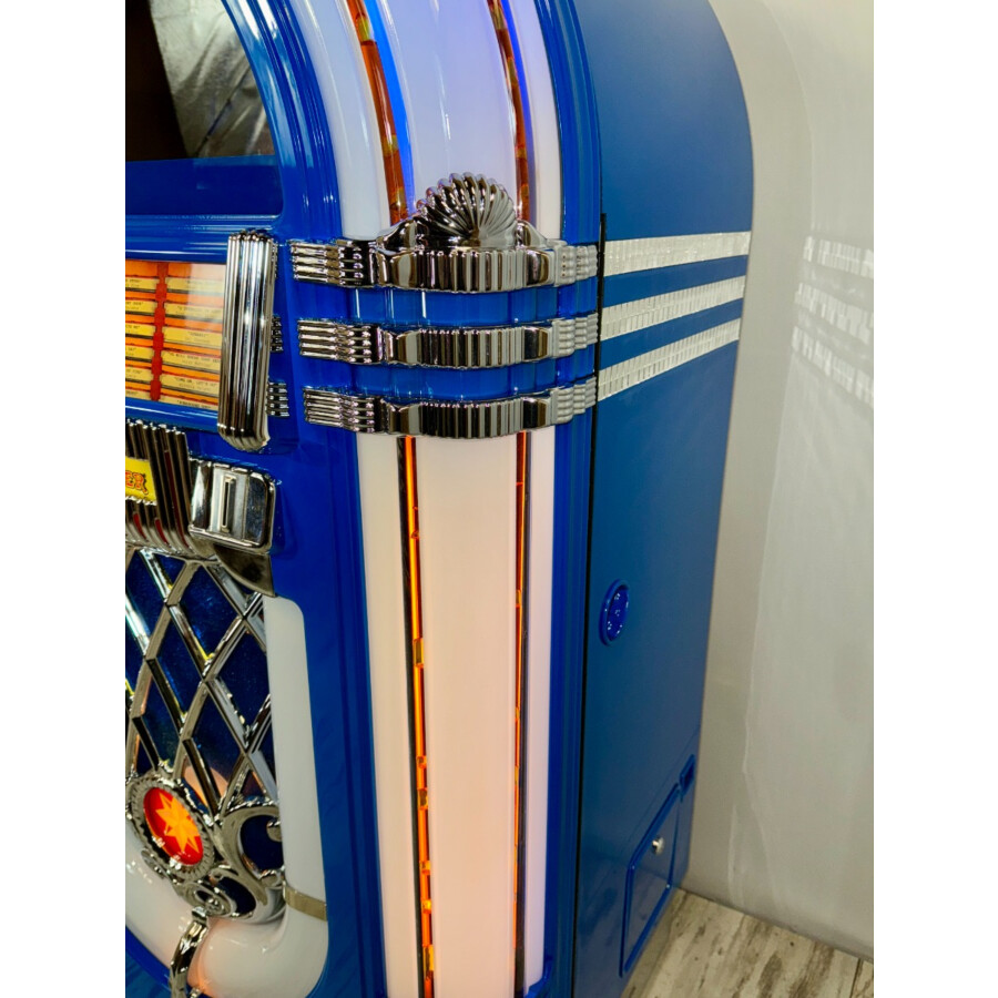 Design Iconique « Bubbler » en Édition Bleue : La forme légendaire Wurlitzer 1015 dans une couleur distinctive et élégante.