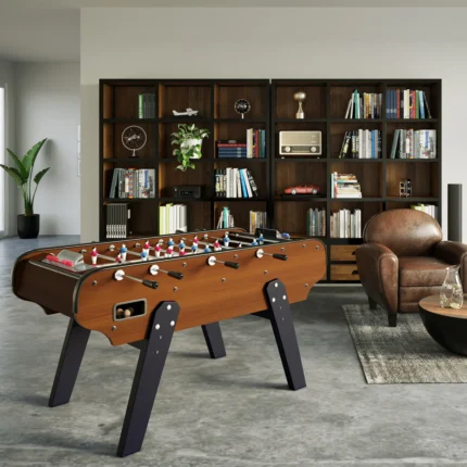 Plongez dans l'ambiance des bistrots d'antan avec ce Baby-foot Bistrot Acajou. Son bois foncé chaleureux et ses finitions professionnelles en font la pièce maîtresse de votre salle de jeux.
