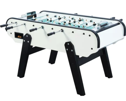 Sublimez votre intérieur avec le Baby-foot Bistrot Blanc. Un modèle rétro remis au goût du jour, alliant une esthétique minimaliste à la robustesse légendaire des tables de bar.